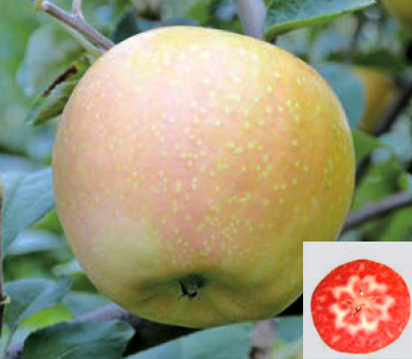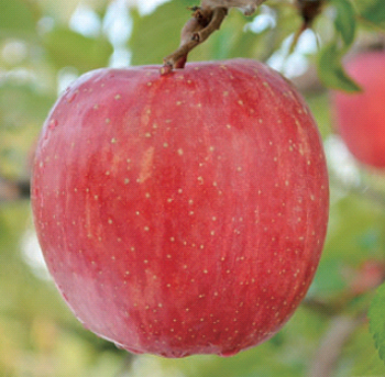 りんご果重は80g前後で、果形は豊円形である。果色は濃赤色に着色し...