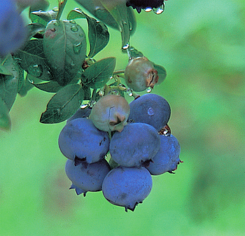 ブルーベリー果実は大粒、扁円形、味は濃厚で香がすぐれている。中生種。