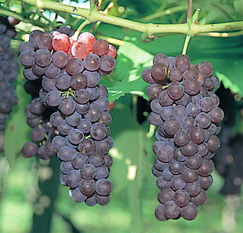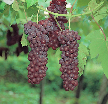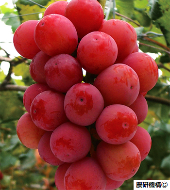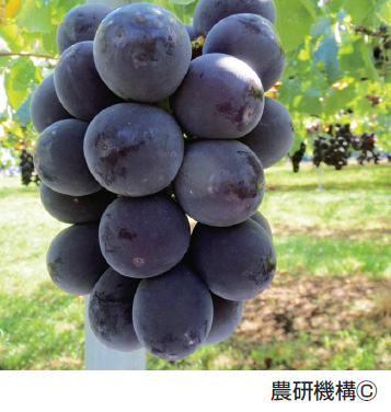 ぶどう果実は中玉で果皮は紫黒色をしており、房が大きく収量が多い。赤...