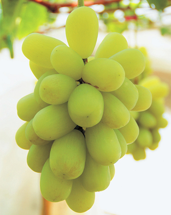 ぶどう果粒は17g〜20g、最大22gに達する極大粒。果形は短楕円...