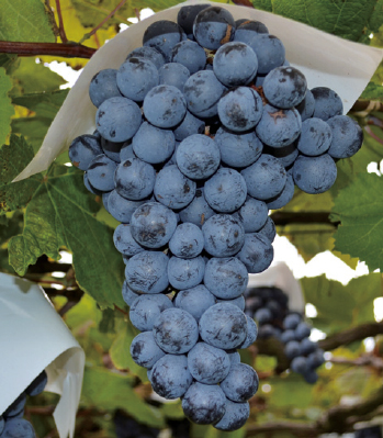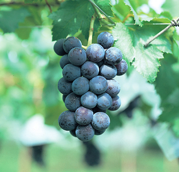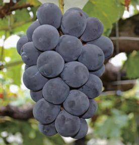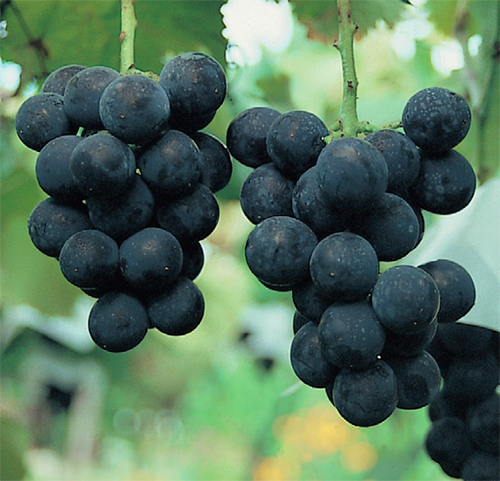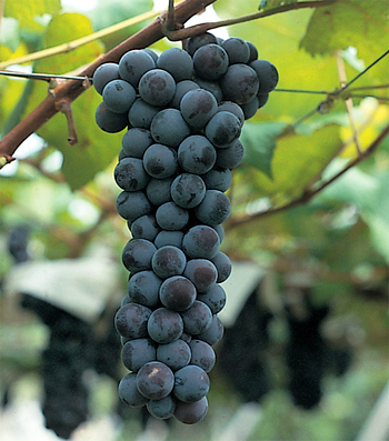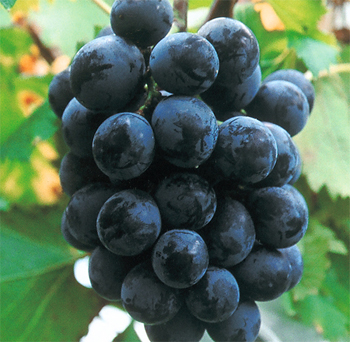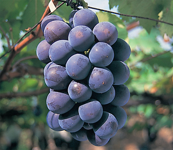ぶどう紫黒色の中熟種で果房円筒形、中粒円型、糖度20〜23度と極め...