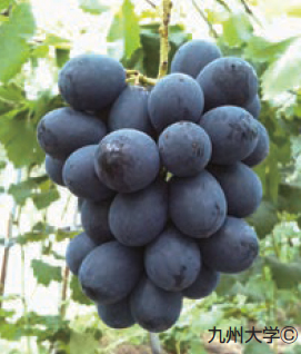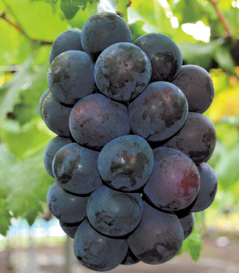 ぶどう紫黒色の大粒の果形で果房は400〜800g。輸送性に富む。