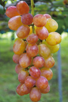 ぶどう楕円形の果粒は大きく、整房は1000gにもなる。着色が良く、...