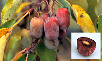 30g位の緑色の果皮は、熟すと果肉と共に赤紫色に変り、皮ごと...